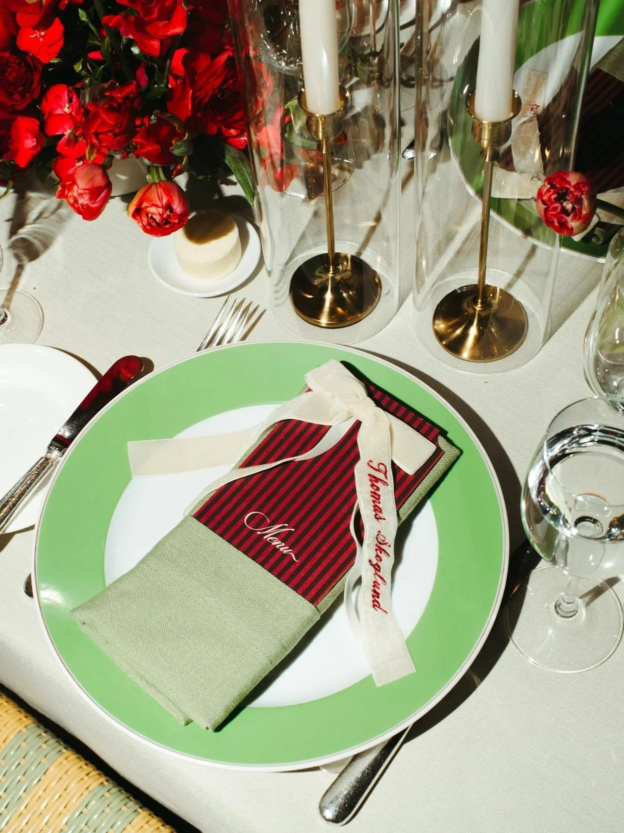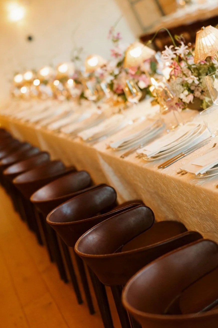Texture is taking the spotlight in 2026. Expect to see rattan, leather, suede, and linen worked into everything from chairs and place cards to menus and table settings. These materials add depth, warmth, and a grounded feel to modern spaces, especially when paired with soft lighting and neutral tones.