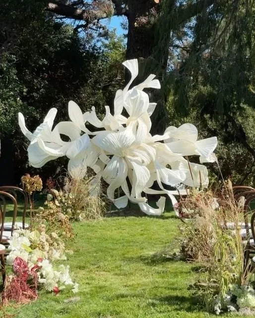 Florals are going architectural this year. Think sculptural, art-inspired installations that feel more like museum pieces than traditional arrangements. Unconventional shapes, bold compositions, and dramatic scale are defining the 2026 floral scene.