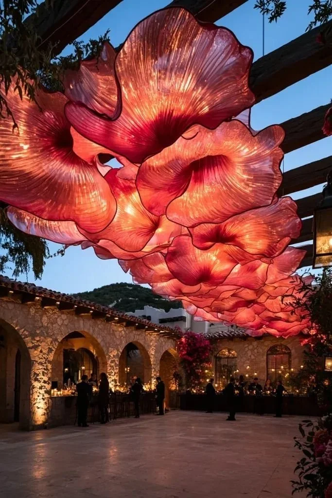 Lighting is no longer just an accent, it’s an art form. This year, we’re seeing architectural, sculptural lighting installations that double as wedding decor. Whether it’s grand chandeliers, glowing pendants, or floating light sculptures, statement lighting sets the mood and transforms a space into something truly cinematic.