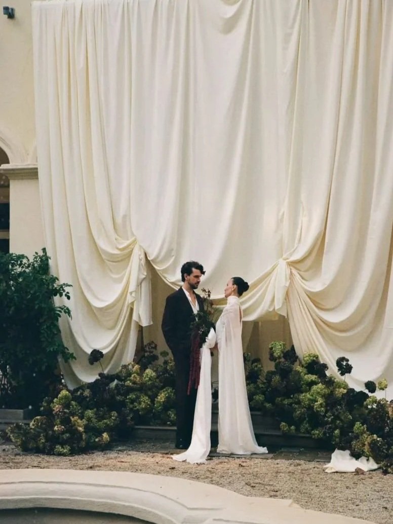 Yes, draping is sticking around, and we’re not mad about it. 2026 brings thicker, more luxurious fabrics like satin and silk, creating a rich, opulent look. But here’s the twist, expect to see colored wedding drape backdrops making a debut. Think soft blush, muted sage, or champagne tones replacing traditional ivory. It’s classic, but with a fresh twist.